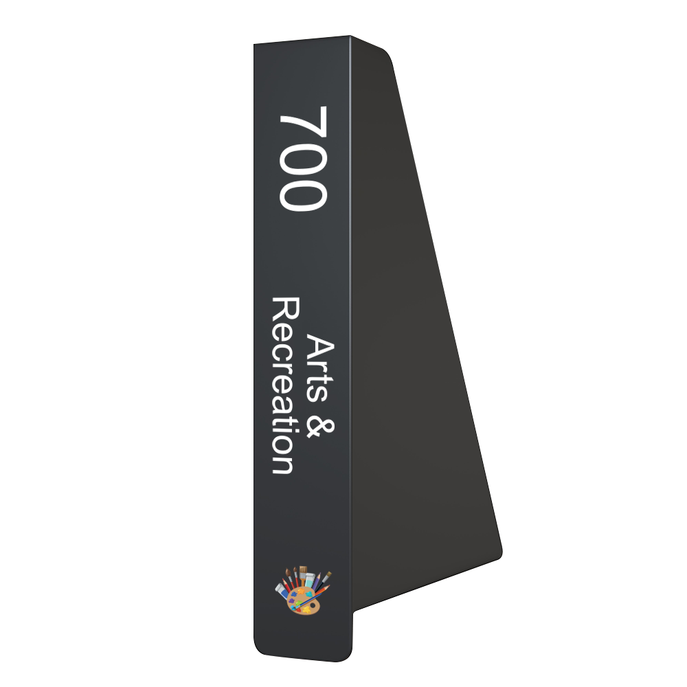 Standard set sitting 245mm tall these self-supporting signs have an L-shaped base which sits under the books.