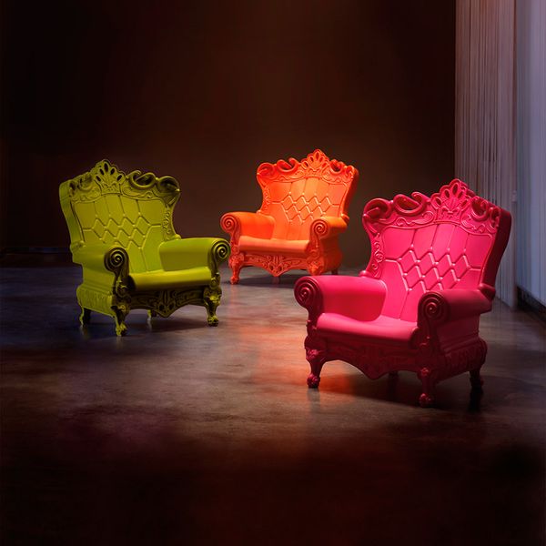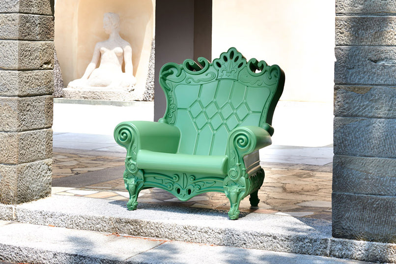 Queen of Love is the unique armchair created by the designer Graziano Moro and Renato Pigatti. The iconic Queen of Love armchair is the first and the most loved product of the whole Design of Love collection: as a throne, Queen of Love crowns everyone who sitting on it. Queen of Love is full in details, as typical baroque style, but it is contemporary, pop and ironic thanks to the material in which it is made, polyethylene. Queen of Love is elegant, attractive, pop and unforgettable, for this reason it is often the protagonist of tv shows and international events.